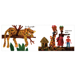 翻開《你看到我的貓嗎?》這本可愛的小書,童書界的拼貼藝術大師艾瑞卡爾將帶領小朋友繞著地球走。他再度運用精簡的文字來說故事,整本書只有「你看到我的貓嗎?」和「這不是我的貓!」這兩個主要的句子,雖然句子一直重覆,但是畫面可沒有閒著,從非洲、中東到亞洲,從獅子、老虎到豹,艾瑞卡爾用五彩繽紛的色紙剪剪貼貼出一趟精彩無比的「萬里尋貓記」。在書中,每一個角色、每一隻動物都不是由單色的色塊所組成的,艾瑞卡爾就是有本事讓這些眼花撩亂、大膽鮮明的圖案相安無事的處在同一個畫面中,成就了呼之欲出的動感。