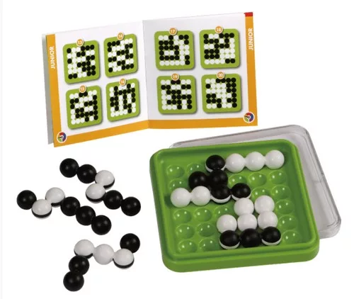 每條串珠都有可彎轉的節點讓你變化形狀,想辦法將6條黑白串珠全部放入盤面。
